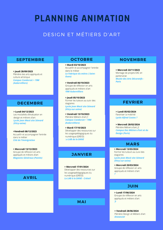 Planning Design Métiers D’Art 2023 2024